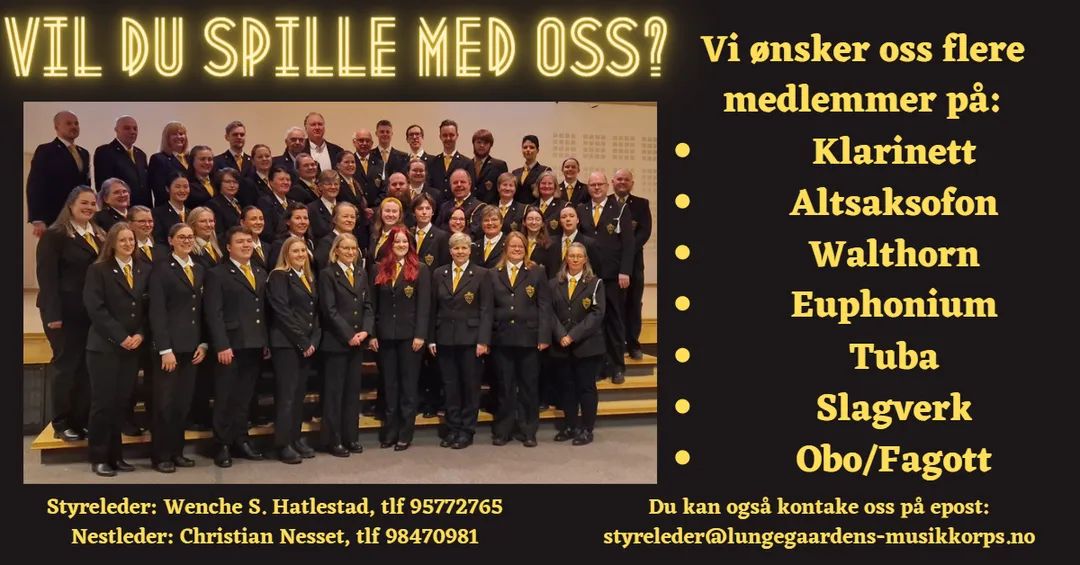 Vil du vite mer om oss så ta gjerne kontakt. Du kan også komme på øvingene våre og se hvordan det er.